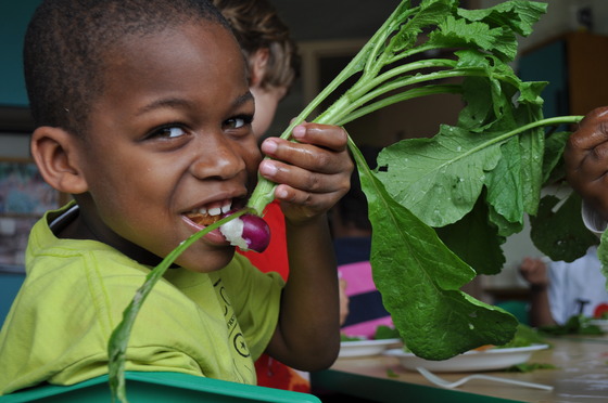 FoodPrints has already allowed our urban school to build the fenced in, flourishing 1700 square foot classroom kitchen garden, and hire a part time teacher, Jennifer Mampara, who conducts and manages the program.  Jennifer has developed a year-long classroom curriculum that supports local and national standards.   Our volunteer master gardener, Barbara Percival, cares for and manages our garden program.  Each FoodPrints class teaches our kids the importance of good nutrition, about our essential eco-systems and plant biology, and exposes them to the joys of eating local, seasonal food.  Each two hour class ends with a hands-on cooking lesson and a simple, shared meal.  (By the end of this summer, the FoodPrints Curriculum will be finalized and available to the public on the FRESHFARM website at no charge.)