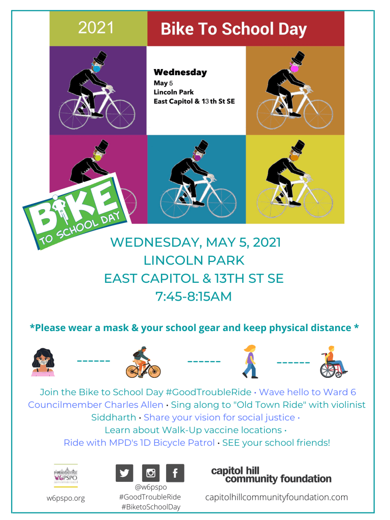 Ready to celebrate Bike to School Day? Join us at Lincoln Park for a (mask on) socially distant event.